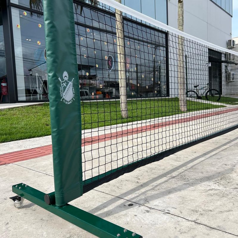 Conheça o Kit Pickleball Móvel, projetado para quem deseja alternar entre modalidades utilizando a mesma quadra. Com suas rodinhas, você consegue mover a estrutura para o canto da quadra sempre que desejar praticar outra modalidade.