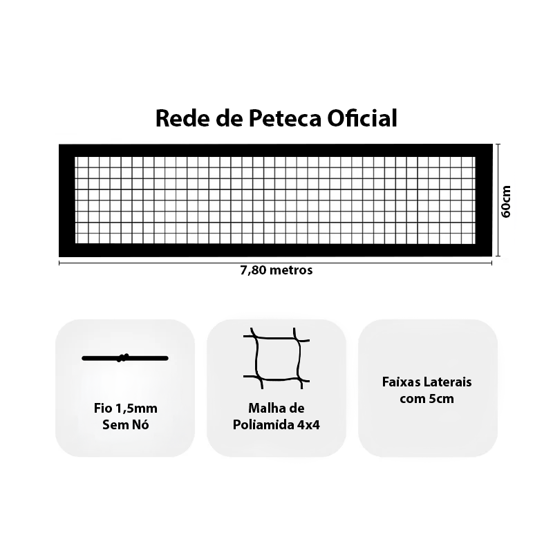 Contém 2 ilhós de cada lado da rede para auxiliar na fixação;